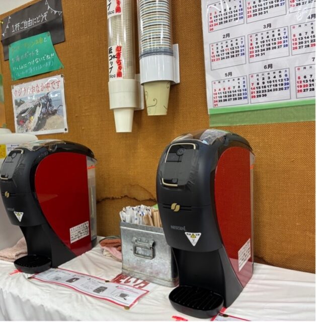ス「そうそう。ネスレ日本株式会社が提供してくれてて、資源を持ってきてくれた人は、コーヒー飲んでちょっと一服したり、ご近所さんとおしゃべりしたりしてはるわ。ここへ来たら元気が出るって言ってくれる人もいるし、誰かとちょっと話すって意外に大事なんちゃうかな」