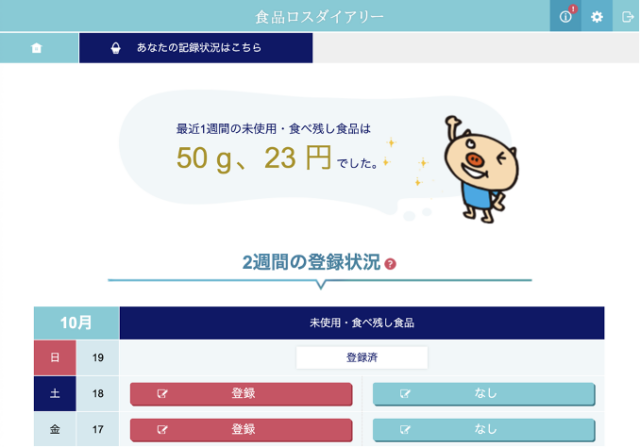 自分がどれくらいの食品ロスを出したかが見える化され、捨ててしまった食品の金額にも換算してくれるので「食品ロスを減らそう」と意識することができますよ。