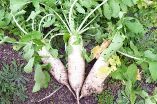 地域委員会のサポートもあり、秋に無事野菜を収穫することができました。キエーロの土で育てた野菜の給食利用は、竹の台小学校が初めて。前例がなく、とても難しい挑戦でしたが、調理士の方々の前向きな協力があり実現することができました。さらに子どもたちは、小松菜とチンゲン菜を一人1枚、大根は1本ずつ、家に持ち帰ることができました。