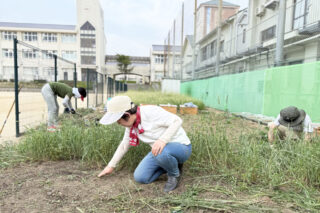 子どもたちに「ここに並ぶんやで」とか「ここに種をまくねんで」と教えたり。学習園では、その日に都合のつくメンバーが集まって、お世話をしていました。葉物野菜の芽は小さいうちは虫に食べられてしまうので、しょっちゅう来て、虫取りをしていましたね。(笑)