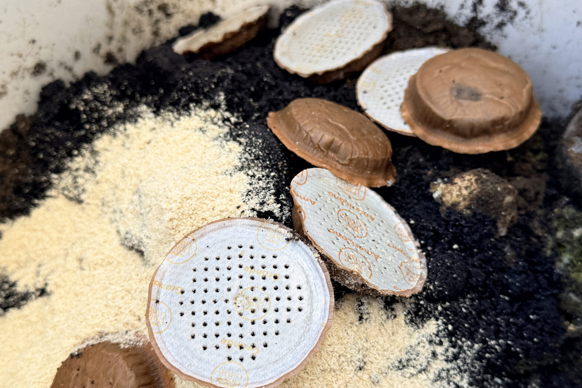 コーヒーグラウンズ(抽出後のコーヒー粉(コーヒーかす))も、生ごみと一緒にキエーロで分解することができます。