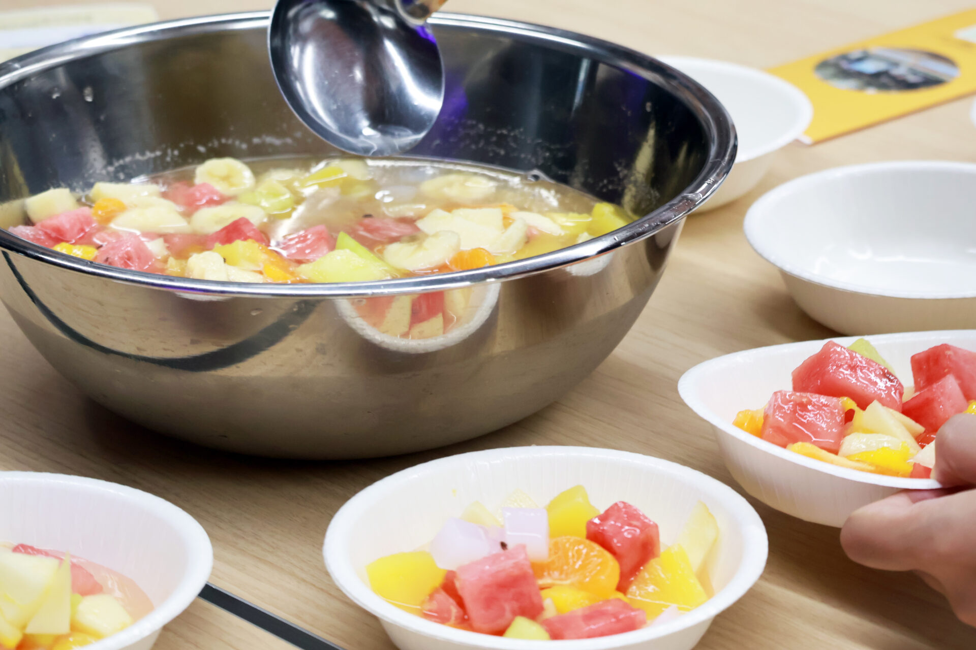 キャンパス内の留学生寮で、留学生と一緒にフルーツポンチを作り、残渣をコンポストに入れるイベントや、