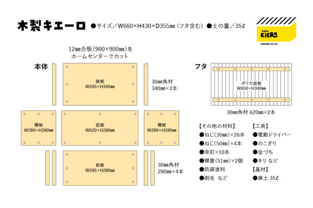 耐久性があるキエーロ容器を作りたいという方におすすめ。市販の深めのプランター容器に蓋をつけるだけ。