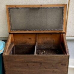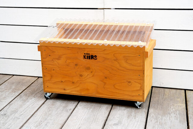 廃棄されるはずだったりんご箱を再利用し、100円ショップで買えるもので作ったキエーロ。