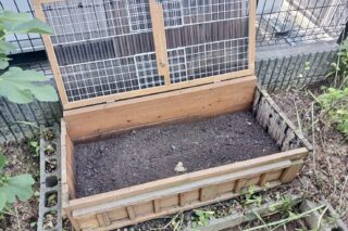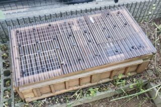 蓋にバーベキューの網を用い、内側は古い網戸を再利用。