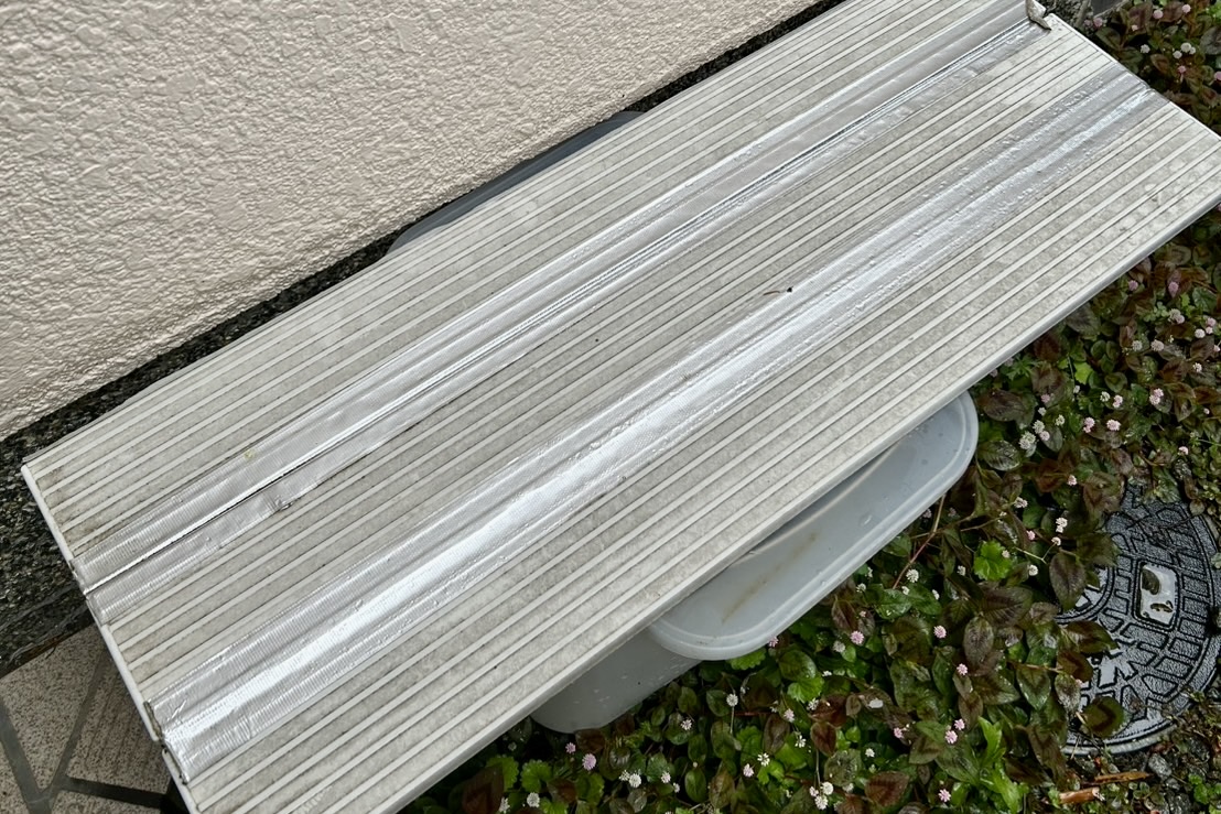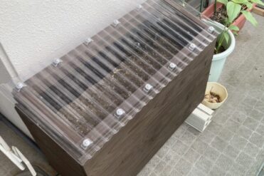 角材はプランターの幅でカットしオイルステイン(防腐効果有り)を塗ります。カットした波板を波板用ビスで固定し、