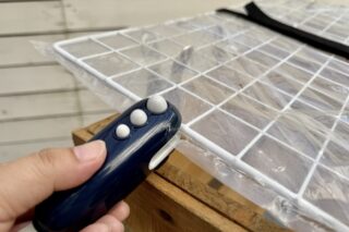 ワイヤーネットを袋とじするようにヒートシーラーで閉じます。ビニールの不要な部分は切り落とします。