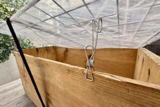 りんご箱を使用する場合は、木の隙間が多いので土がこぼれ出す可能性があります。防水テープを貼って隙間を埋めます。