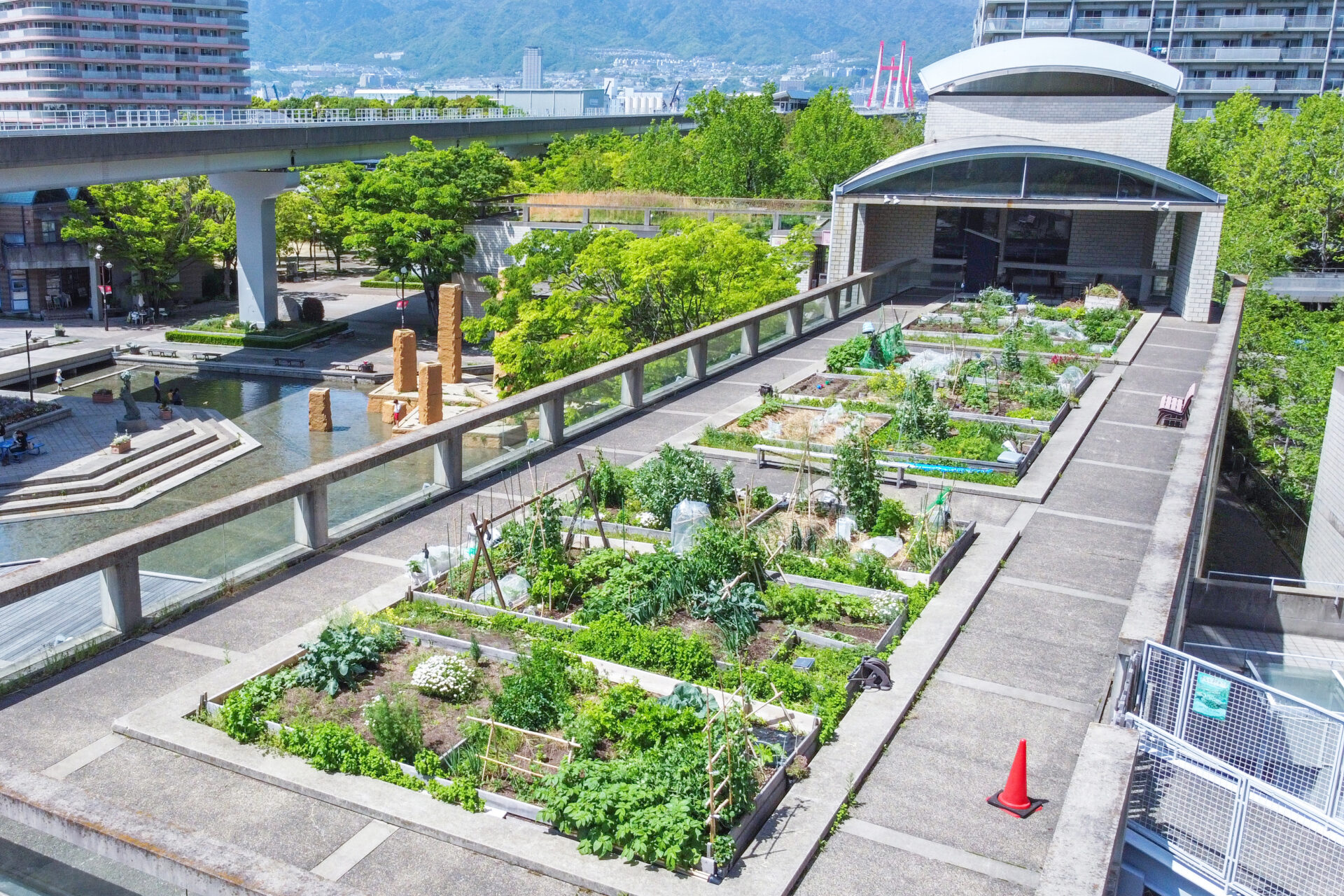 東灘区の六甲アイランドにある「シェラトンファーム」は、神戸ベイシェラトンホテルの屋上にある都市型貸農園。神戸ベイシェラトンホテルとナチュラリズムファームが連携して運営し、神戸市が推進する「アーバンファーミング(都市農業)」のモデル農園第1号としても知られます。